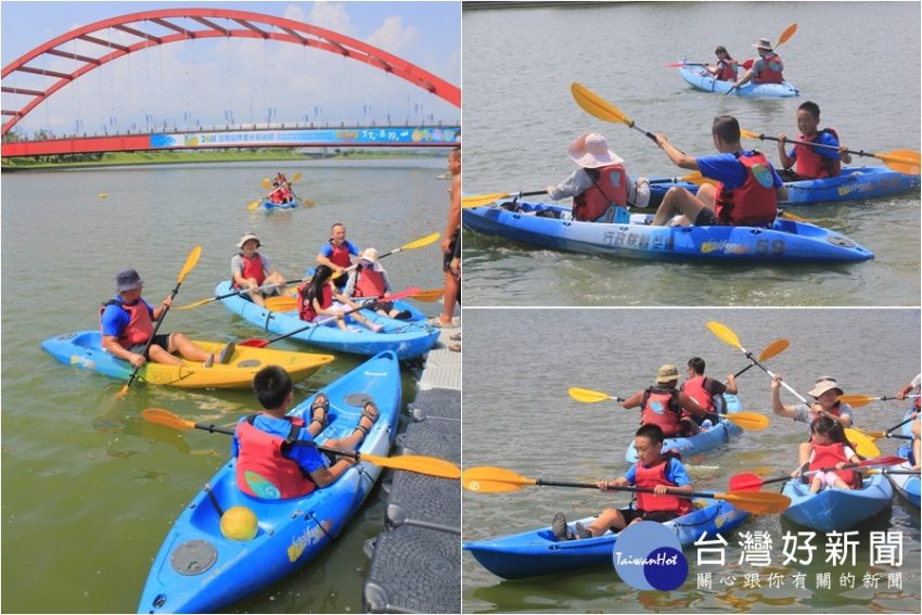 童玩節還可免費體驗輕艇等水上運動。(圖/陳木隆攝) 2018宜蘭國際童玩藝術節,不僅在冬山河親水公園提供多項戲…
