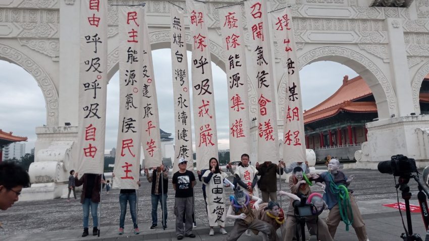 摘錄自2019年12月26日中央社台北報導 環保團體29日將舉行反空污遊行,26日聯合舞踏表演團體於中正紀念堂…
