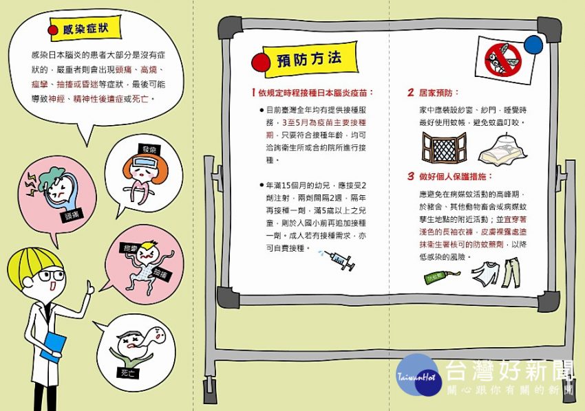 衛福部疾病管制署24日公布,新竹市新增1例53歲男性確診日本腦炎病例。疾管署提醒目前國內仍處日本腦炎流行季,呼…