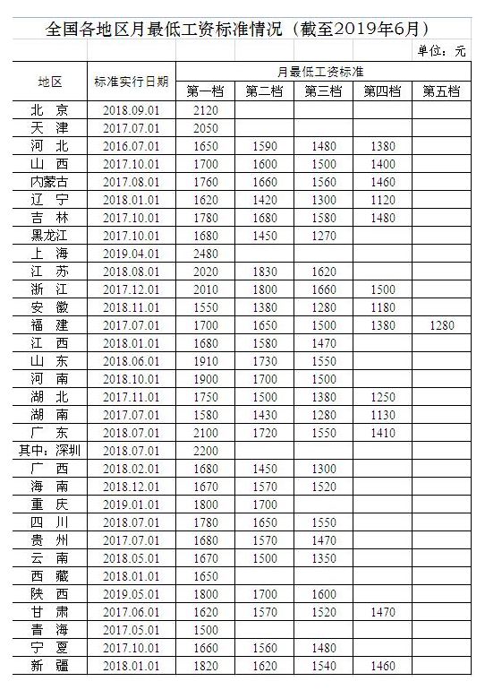 31省份最低工資排名出爐:6省份超兩千 上海2480元領跑