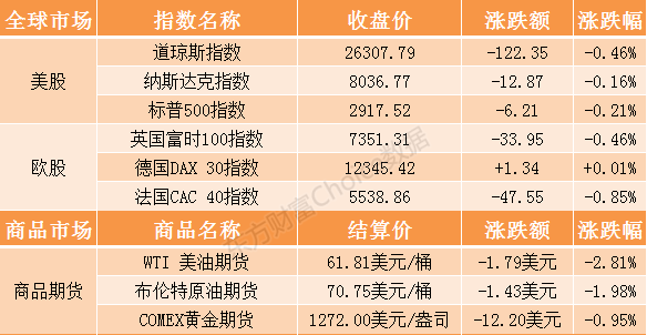 隔夜外盤:歐股漲跌不一美股連跌兩日 美油下挫近3%金價創年內收盤新低