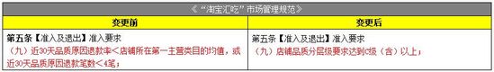 “淘寶匯吃”規範變更 准入要求指標替換