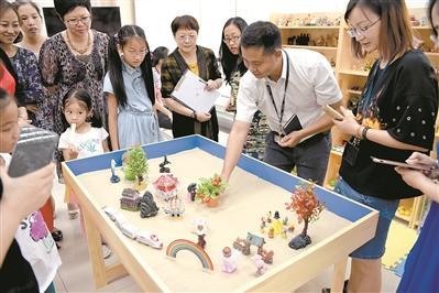 游繽和法官一起演示如何玩沙盤遊戲。 玩玩沙盤 破鏡就能重圓? “婚姻修復師”入駐深圳羅湖法院 已受理50多宗案…