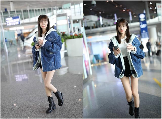 沈夢辰牛仔毛絨外套配短褲,不懼低溫秀美腿