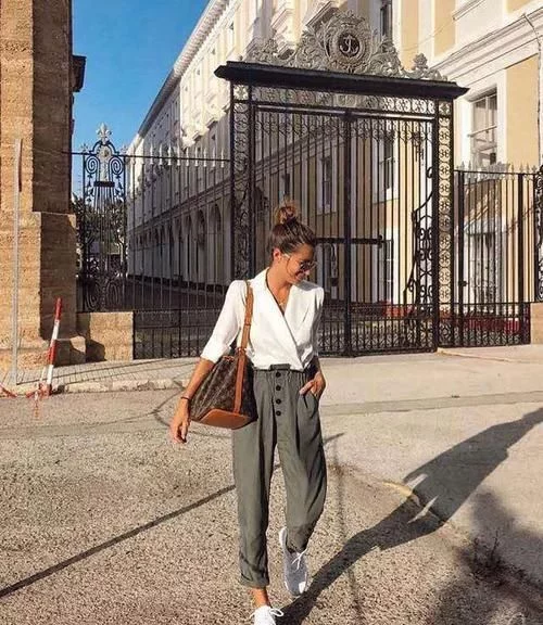 九分褲+運動鞋的街拍穿搭,直接copy 第1種:九分奶奶褲+運動鞋 時髦精偏愛的奶奶褲,小編真的要…