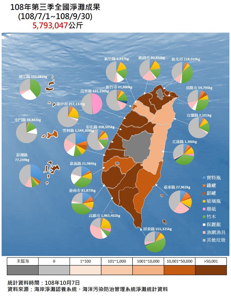 摘錄自2019年10月8日聯合報報導 海洋委員會海洋保育署今天(8日)公布,今年第3季海洋廢棄物清除量,包含淨…