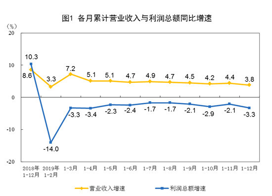2019年全年工業企業利潤總額61995.5億 同比下降3.3%