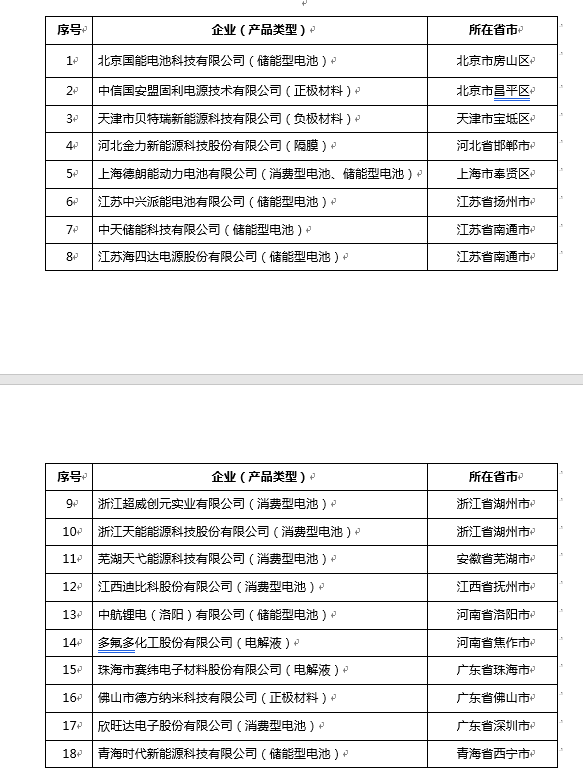 工信部公示第二批擬公告符合《鋰離子電池行業規範條件》企業名單