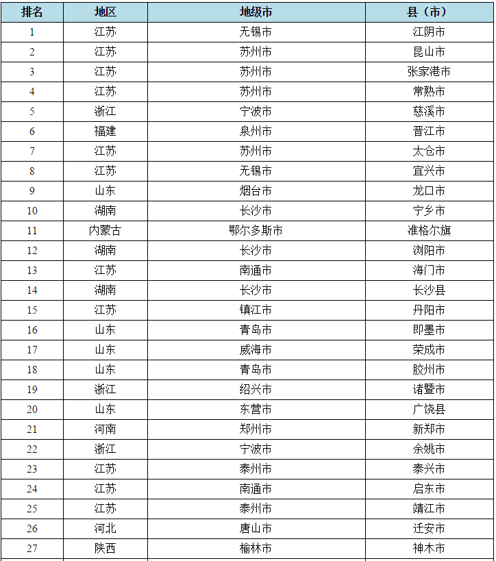 中國工業百強縣名單出爐!你的家鄉上榜了嗎?(表)
