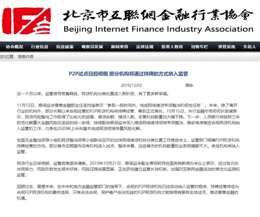 12月2日消息,《電商報》獲悉,北京市互聯網金融行業協會(以下簡稱:協會)官網發布一則通知表示,近期監管信號密…