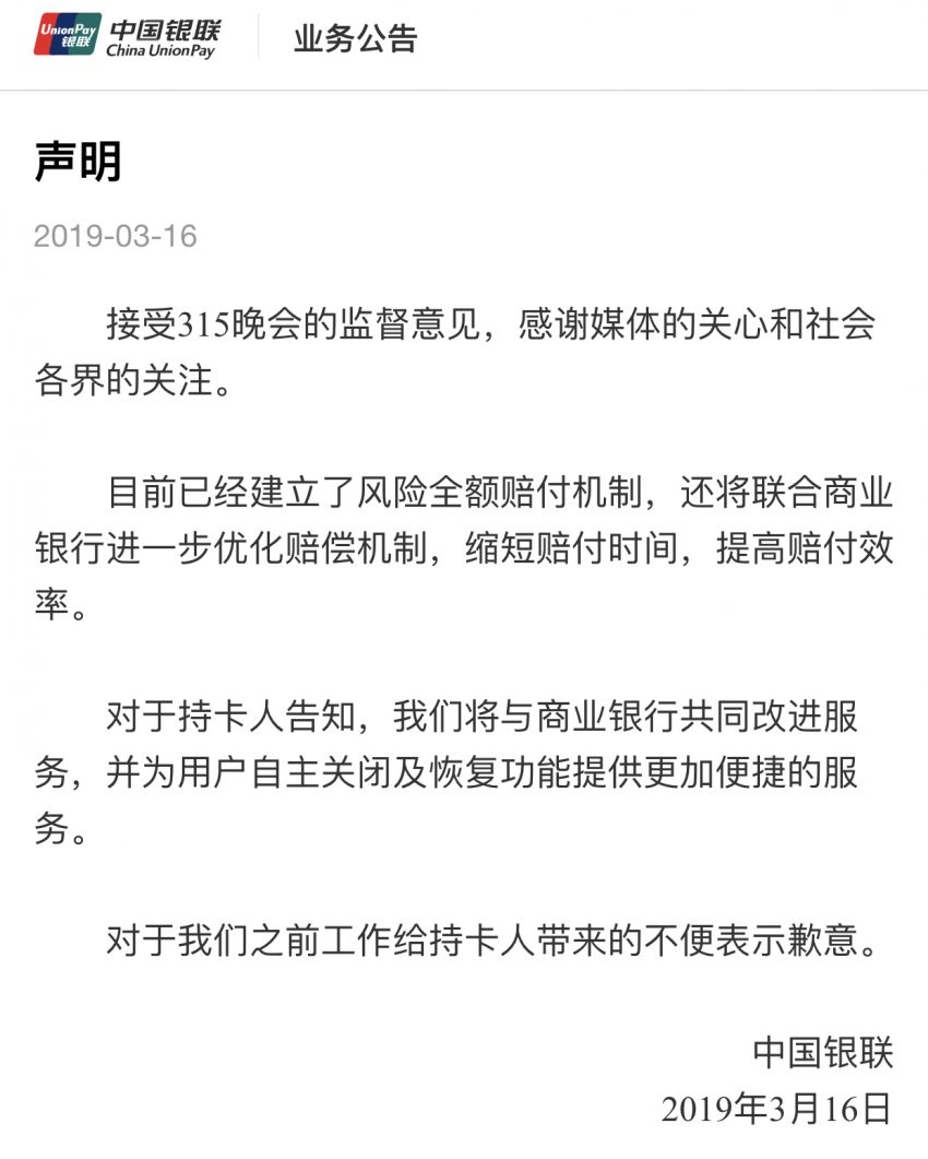 遭315晚會曝光后,銀聯就“閃付”功能存在“隔空盜刷”的風險對廣大消費者進行消費預警。 銀聯回復稱,接受3·1…