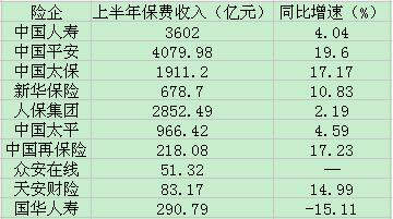 上市險企上半年保費:平安增速居首 國華人壽唯一下滑