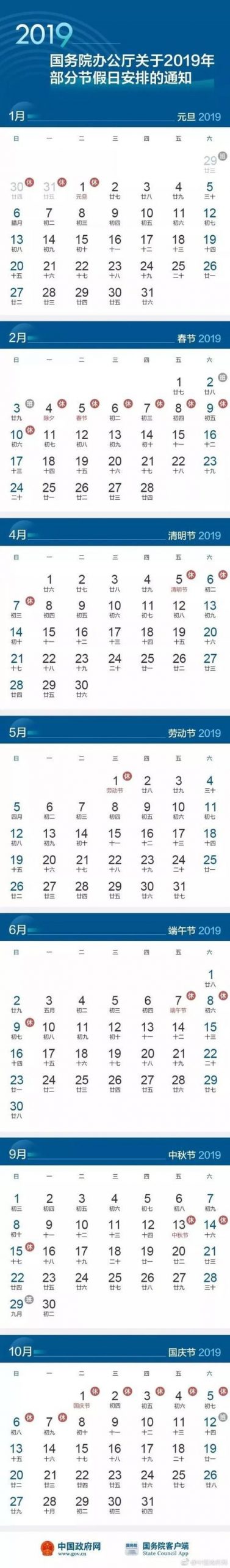 國務院辦公廳今日發布關於2019年部分節假日安排的通知,具體如下: ①元旦:2018年12月30日至2019年…