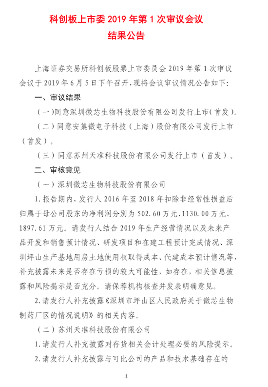 6月5日下午,上交所召開科創板上市委2019年第一次審議會議,三家上會企業微芯生物、安集科技、天准科技全部獲得…