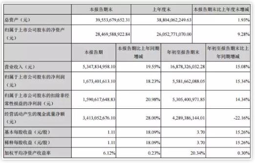1-9月洋河實現營收169億增15% 凈利56億增15%
