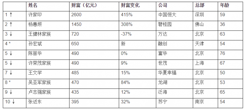 2017胡潤房地產企業家榜:許家印再次成為地產首富