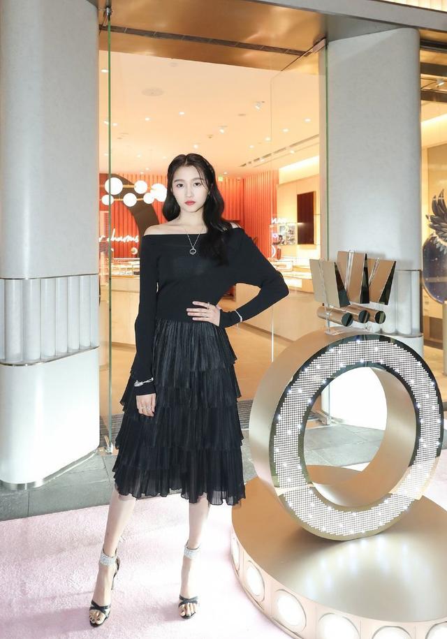 關曉彤這氣質絕了,穿露肩黑色蛋糕裙配高跟鞋