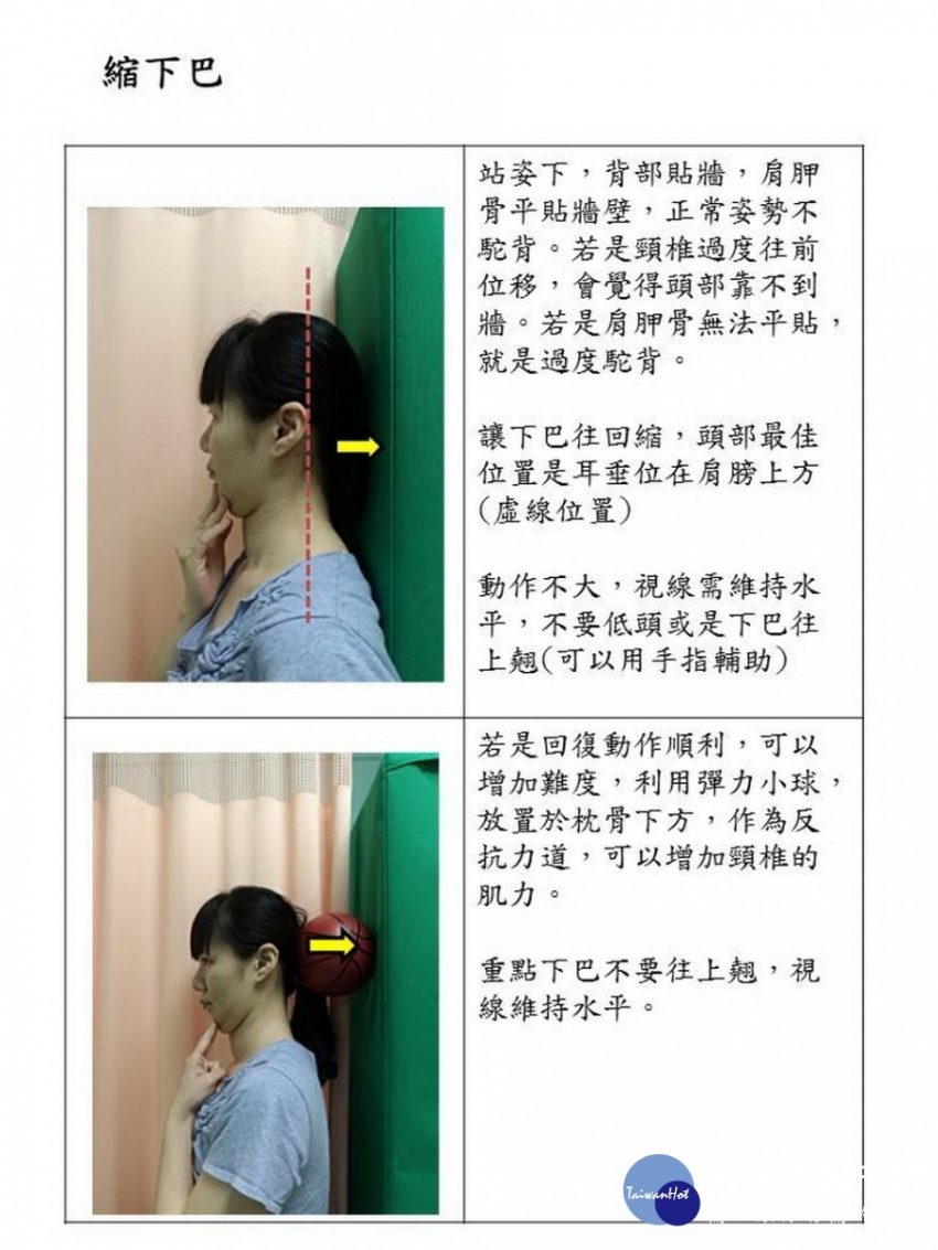 長時間姿勢不良記得做縮下巴等運動。(南投醫院提供) 又在滑手機嗎?現在人每每手機不離身,電腦使用的時間與頻率也…