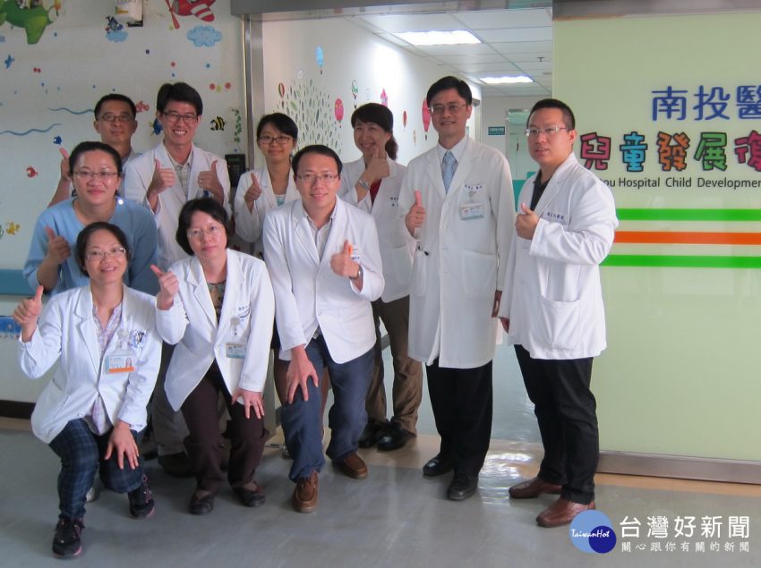 林宛臻(後左三)說要有耐心引導自閉孩童發展其優勢。(南投醫院提供) 全台灣自閉症人數在衛生福利部統計下,顯示2…