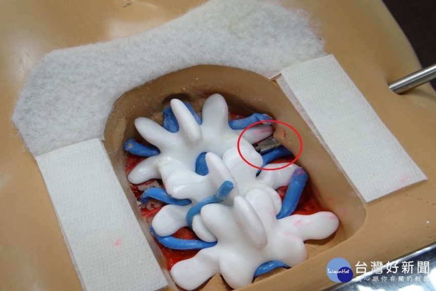 奇美醫學中心骨科部主治醫師黃建榮以模型示範微創脊椎內視鏡手術操作方式。 奇美醫學中心骨科部主治醫師黃建榮表示,…