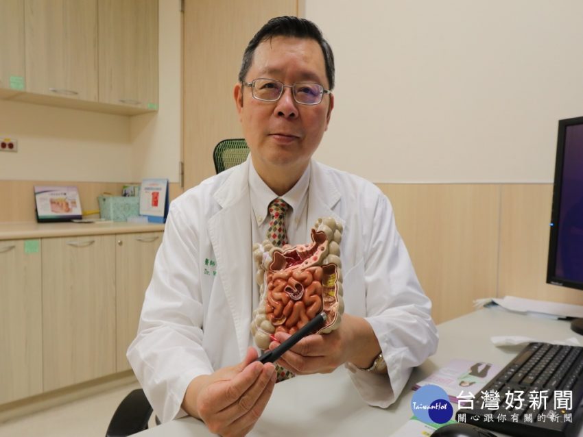 醫生指腫瘤位置。林重鎣攝 台中81歲許伯伯18年前準備退休享清福之際,因肚子脹痛、 體重異常減輕及排便習慣改變…