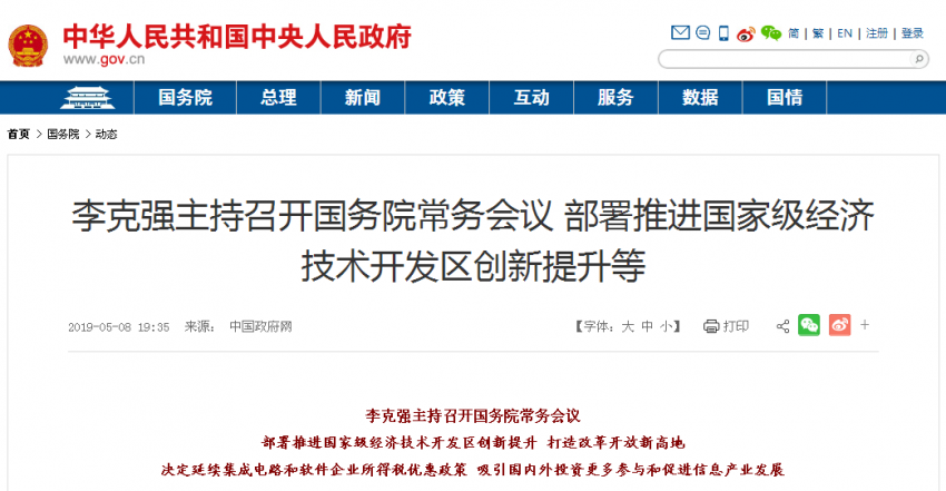 摘要 【李克強主持召開國務院常務會議】國務院總理李克強5月8日主持召開國務院常務會議,部署推進國家級經濟技術開…