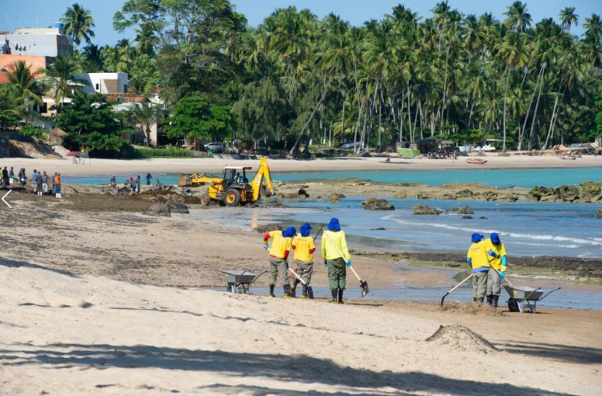 巴西海岸漏油原因仍是謎 成千上萬志工「挖黑泥」